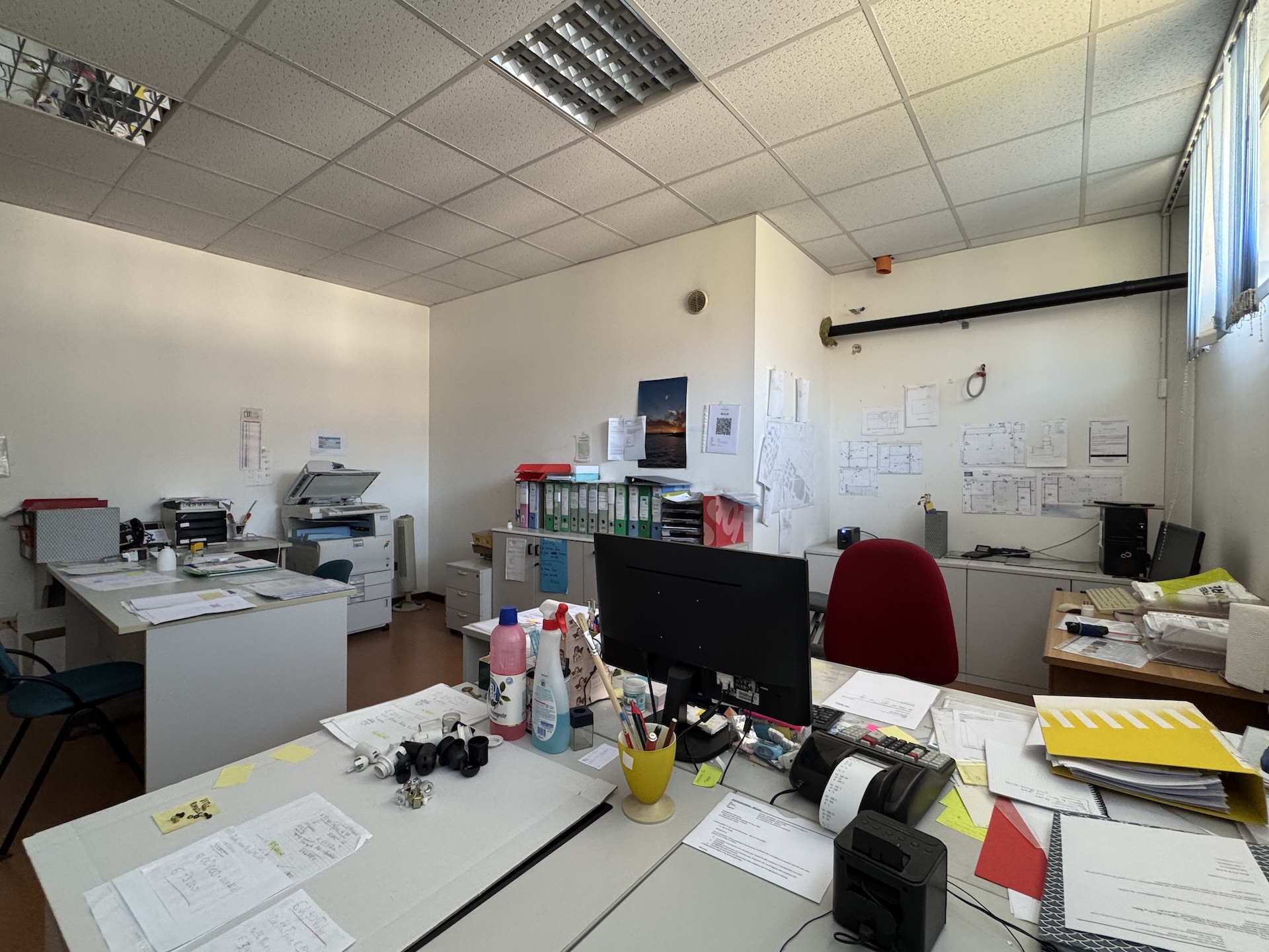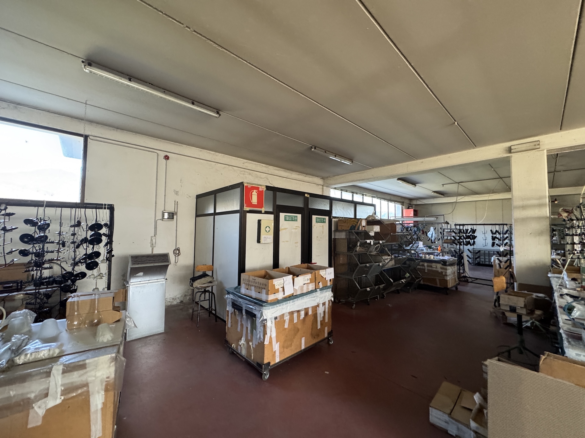 Il capannone, realizzato tra la fine degli anni ’90 e i primi anni 2000, è organizzato in più corpi collegati tra loro, con reparti produttivi e magazzini al piano terra e al piano primo sottostrada (altezze interne indicativamente tra 4,00 e 5,00 m nelle zone principali) e una parte direzionale e di showroom ai piani superiori.